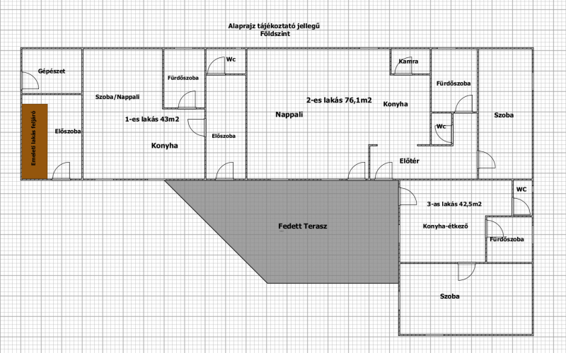 Földszint – 3 külön bejáratú lakás: