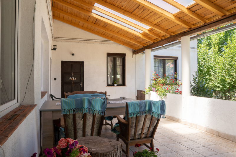 A földszinten továbbá található egy 30 m²-es fedett terasz, a ház mögött pedig egy hangulatos kiülő, ideális helyszín baráti összejövetelekhez vagy családi pihenéshez.
