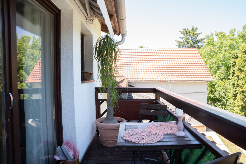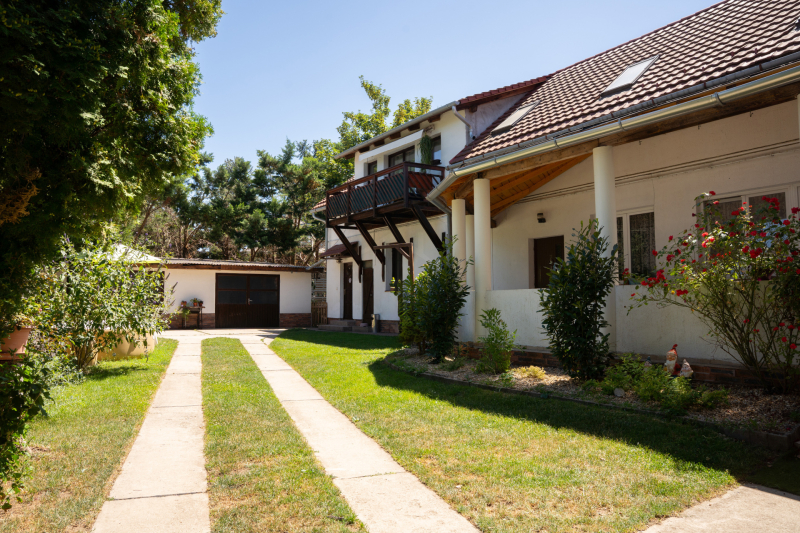 A gondozott kert és az ingatlan elhelyezkedése csendes, családbarát környezetet biztosít, mégis könnyen megközelíthető a városközpont és az autópálya.